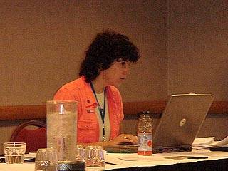 Michelle Lange performs her duties as Secretary in the Board Meeting.