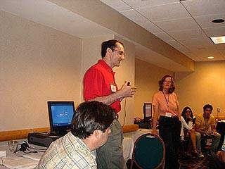 Greg Lesher from Enkidu presents to the gathering in the Developers Forum.