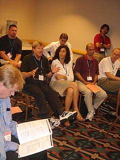 Caren Sax listens to the discussion at the Jobsite Accommodations (& Ergonomics) *Works In Progress* Session.